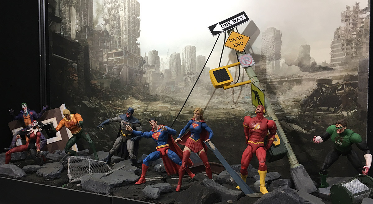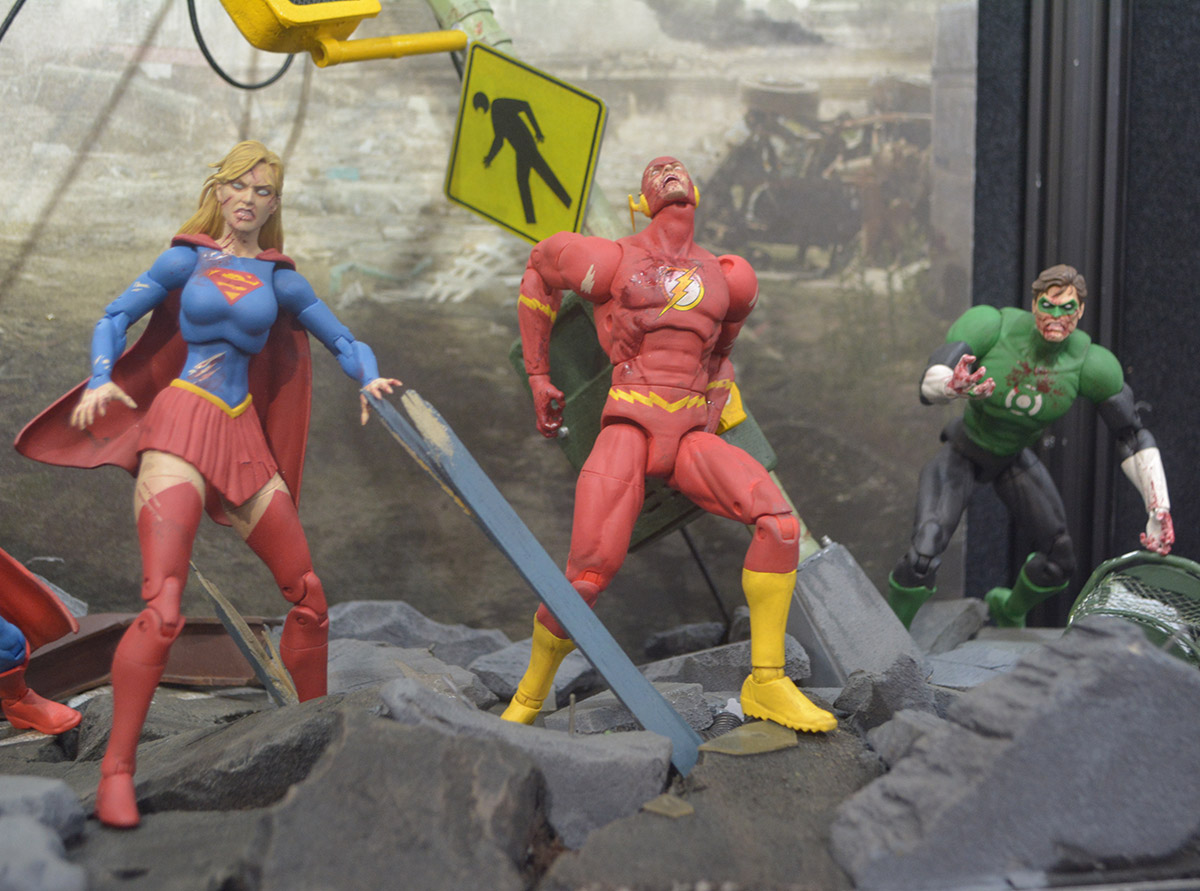Straight from the pages of DC comics, action figures of DC's Deceased superheroes rise up in an amazing diorama display at DC Direct's booth at New York Toy Fair. See heroes and villains alike crawling through the rubble of a post apocalyptic hellscape in the photos and video below!