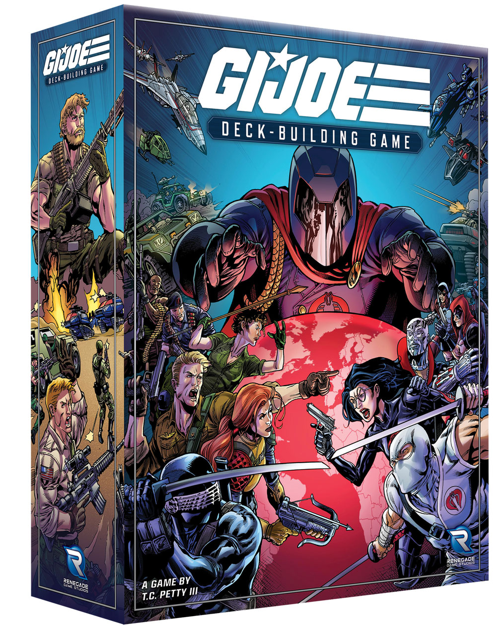 In this deck-building game, you and your fellow players will lead teams of G.I. Joe soldiers on missions to stop Cobra’s dastardly plans! Each player starts the game with a meager deck that will grow more powerful as you recruit veterans from the G.I. Joe team, requisition gear, and field new vehicles.